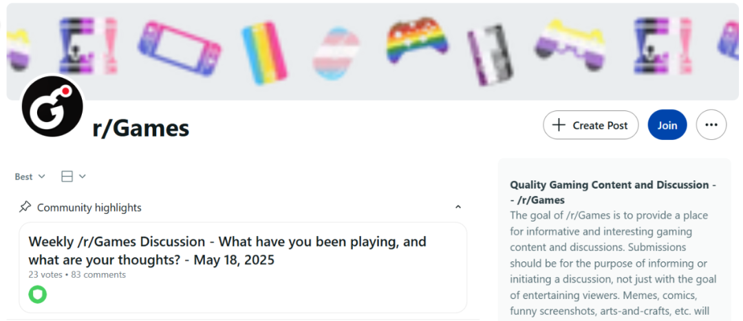 Reddit 上围绕游戏的海外社区(Subreddits)非常活跃,涵盖从大型 IP 到小众独立游戏。这些社区成员普遍为重度用户,在玩法、设定、剧情等方面有深入讨论。