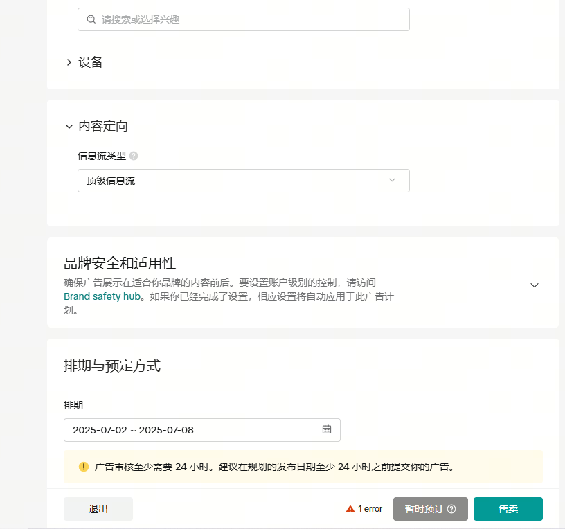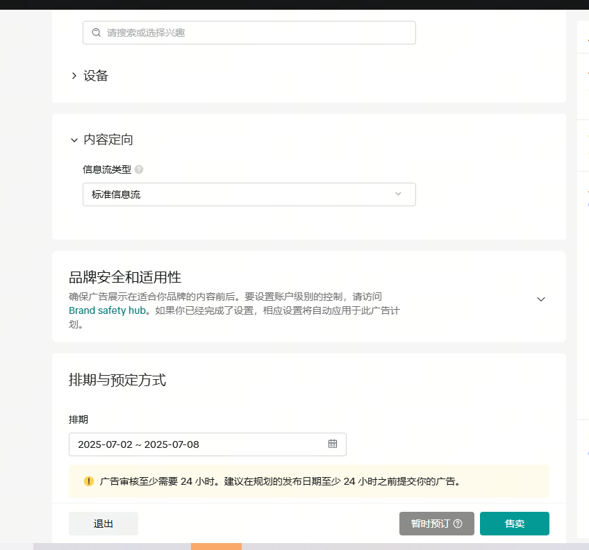 你也可以不选择“购买”,而是通过“暂时预订”暂时性地确保获得TikTok广告位,但并不敲定所有细节。